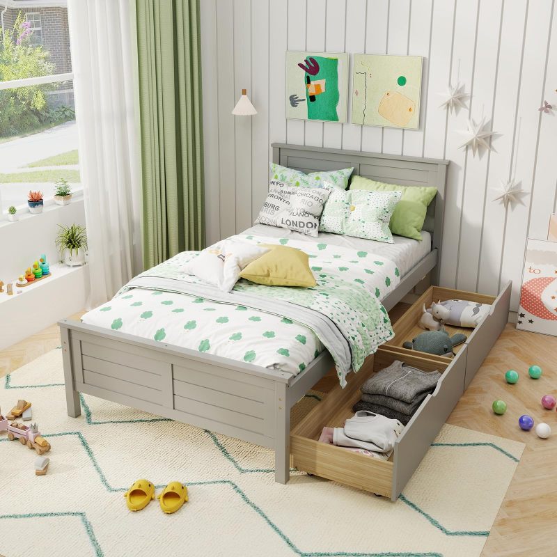 KOMFOTT Wood Bed Frame with 2 Storage Drawers