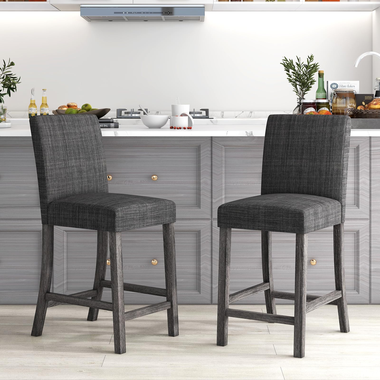 - Wide Application: With a 24.5” seat height, the fabric stools set matches with 35" to 39" height tables. It is a perfect addition to various settings including kitchen islands, dining room, pubs, etc, blending seamlessly with different room decors.