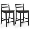 KOMFOTT Wooden Bar Stools Set of 2/4, 24-Inch Counter Height Stools with Ergonomic Backrest & Footrest