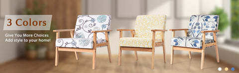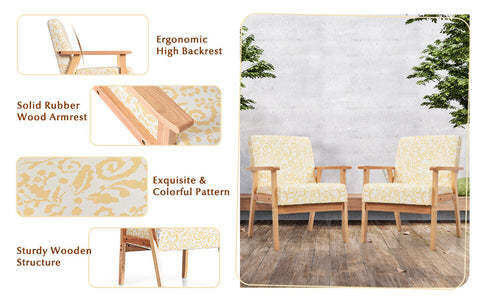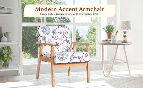 KOMFOTT Mid Century Accent Arm Chairs, Fabric Modern Armchairs w/Rubber Wood, Pretty Pattern, Soft Sponge