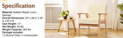 - Sturdy & Durable Construction: Made of solid wood frame and rubber wood armrest, this upholstered armchair is very stable and durable for a long lifespan. It has no burr and no smell for safe use. Thanks to premium materials, it can withstand up to 265 lbs without wobbling.