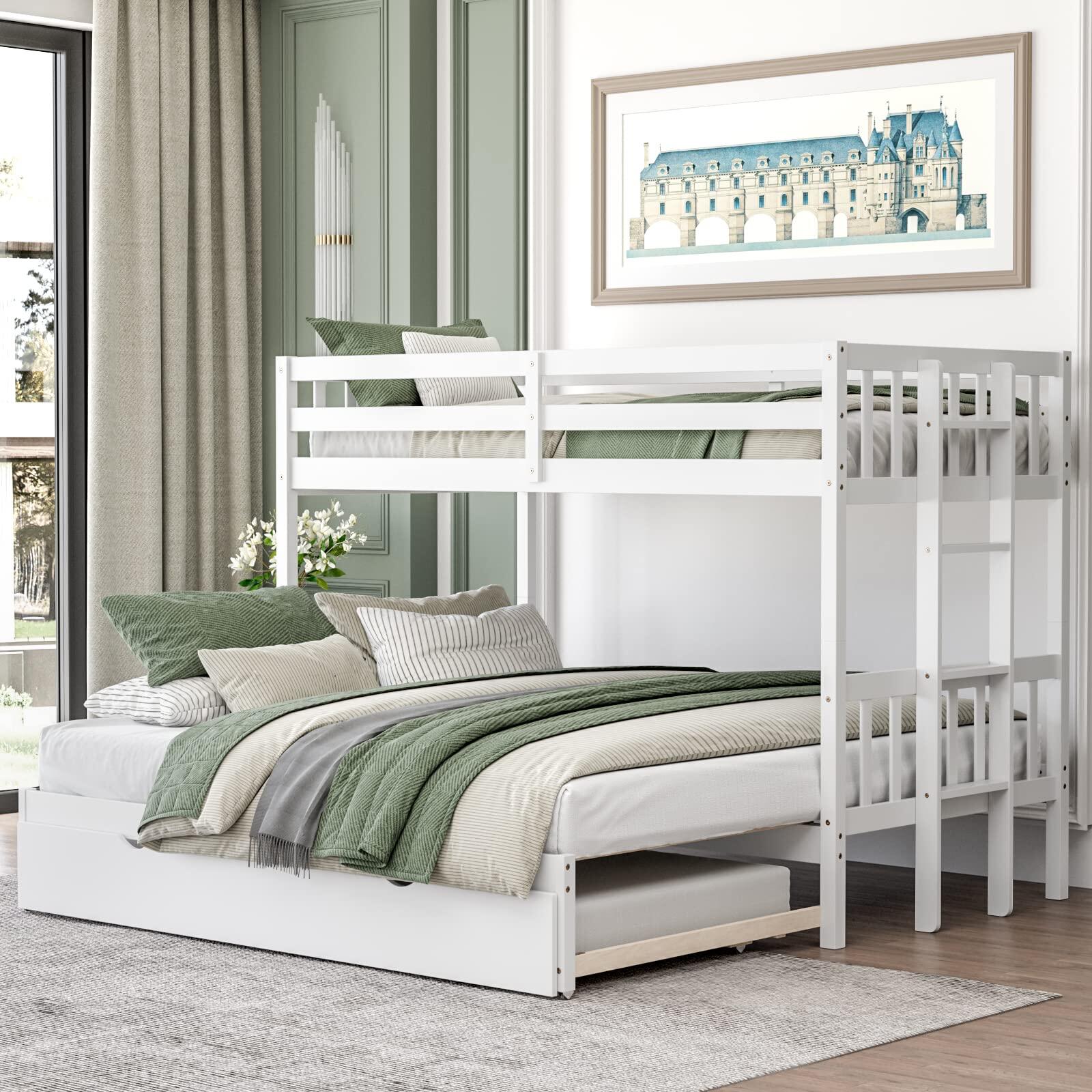 - [Wide Range of Applications] The bunk bed with trundle is suitable for families with more than one child or for accommodating guests. You can place this bed in the dorms, apartments and children’s rooms. Additionally, the underside bed can be expanded or contracted to meet your different needs for sleeping space.