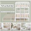 - [4 in 1 Design Bunk Beds] Our pull-out bunk bed can be used in 4 different sizes(Twin/Full/Queen/King), which can create extra sleep space when needed. What’s more, this bunk bed can convert into 2 single beds to save space while not in use. This space-saving design is suitable for a compact room with low ceiling or limited space. Additionally, with the option to use two twin mattresses underneath, it can accommodate up to four people at most.