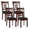 With a considerate design, each kitchen chair features a 22'' high backrest and a 5'' thick seat that reduce sedentary discomfort. Upholstered in durable PVC leather, they offer a skin-friendly touch that is easy to maintain. The chairs are filled with ultra-soft sponge for added elasticity and fatigue relief. With rubber wood legs and anti-slip foot pads, they provide stability and can support up to 355 lbs. The vintage style is accentuated by the black seat, brown wooden frame and decorative double X-shaped frames. Installation is a breeze, thanks to the user-friendly manual.
