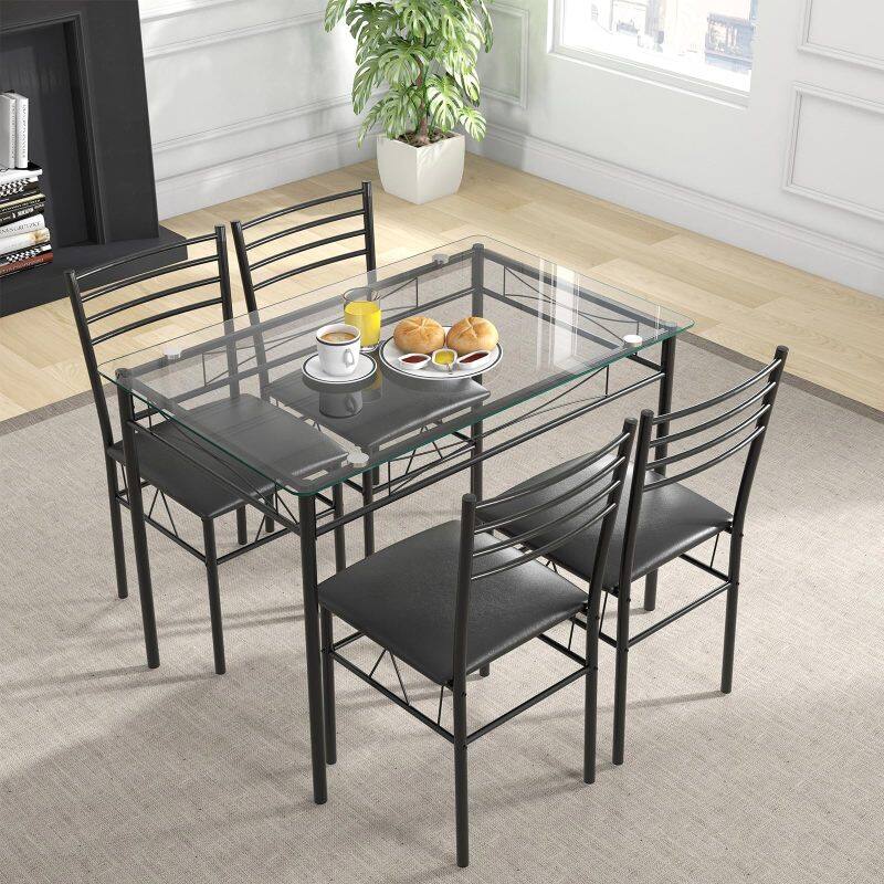 KOMFOTT 5 Piece Dining Table Set with Tempered Glass Table Top and 4 Upholstered Chairs