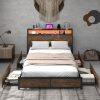 - Industrial Style & Easy Assembly: The combination of wood grain panels and metal frames gives the bed frame an industrial feel. It is suitable for use in master room, guestroom, and hotel. With the detailed manual and numbered parts, you'll set up the bed base with ease. Plus, the drawers can be latched onto the bed easily thanks to the drawer fixture.