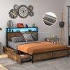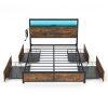 KOMFOTT Metal Bed Frame with LED Lights Headboard and 4 Storage Drawers, Outlets and USB Ports Charging Station