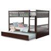 KOMFOTT Full Over Full Wood Bunk Bed with Trundle, Ladder, Solid Wood Frame & Safety Guardrails