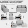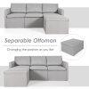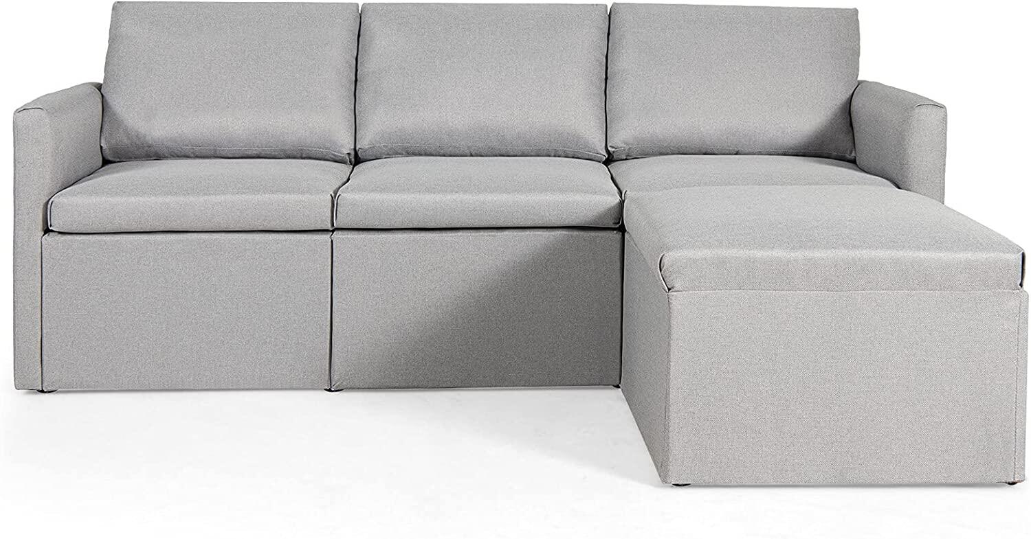 - [Convertible Sectional Sofa]: L-shaped Sectional sofa with either right or left-side chaise couch. Due to its modular design, each sofa functions separately, and the fun part is that this sofa set can be shaped with different positions to match with your home landscapes. 2 corner sofas, 1 armless sofa, and 1 ottoman are included.