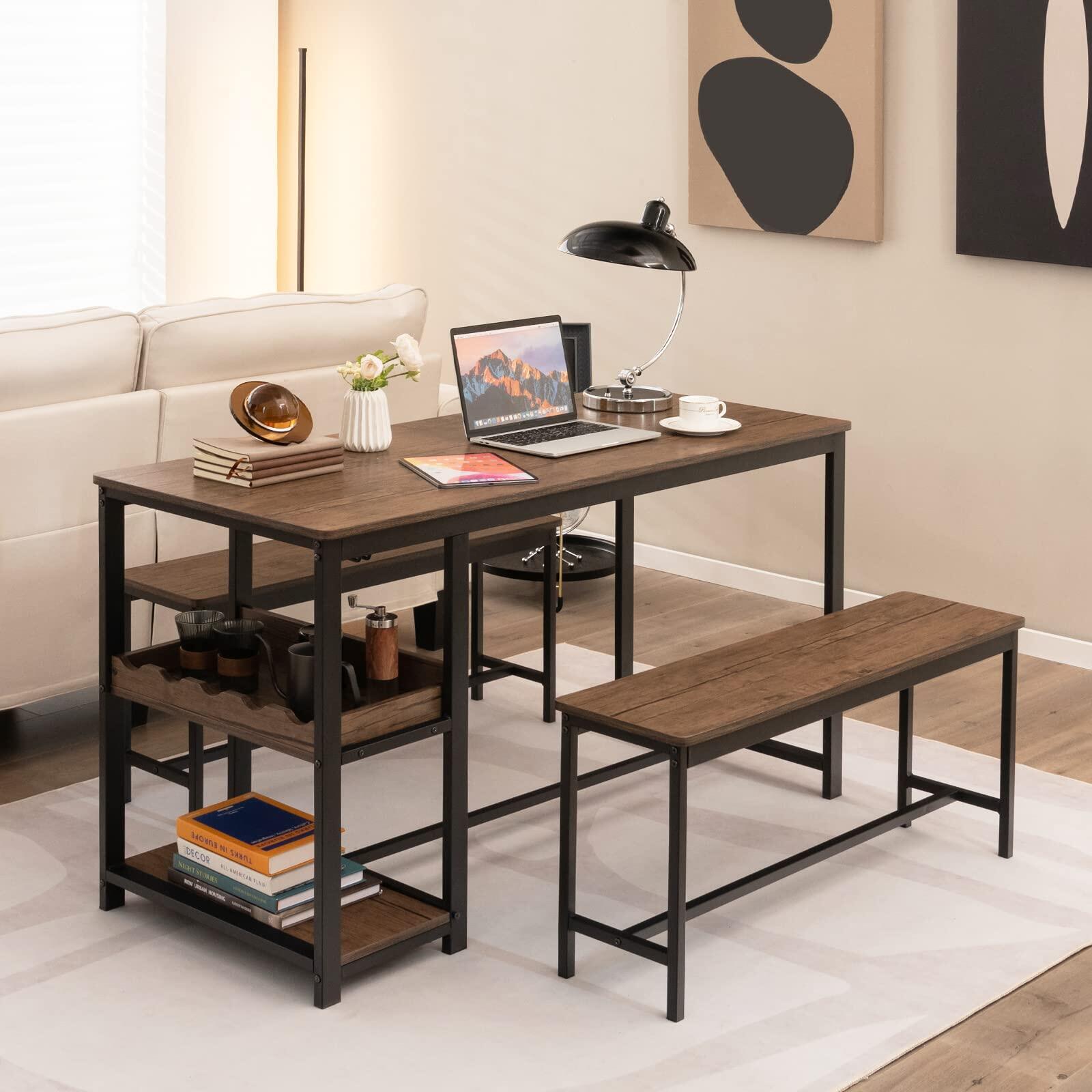 - 【Sturdy Structure & Heavy Duty】: Our 3-piece kitchen dining table set supporting frame is constructed of high-strength powder-coated steel, ensuring long-lasting durability and a large loading capacity. The dining room table tabletop loads up to 440 lbs, each shelf loads up to 44 lbs, and each bench loads up to 330 lbs. Also, it is equipped with anti-slip pads to protect your floor.