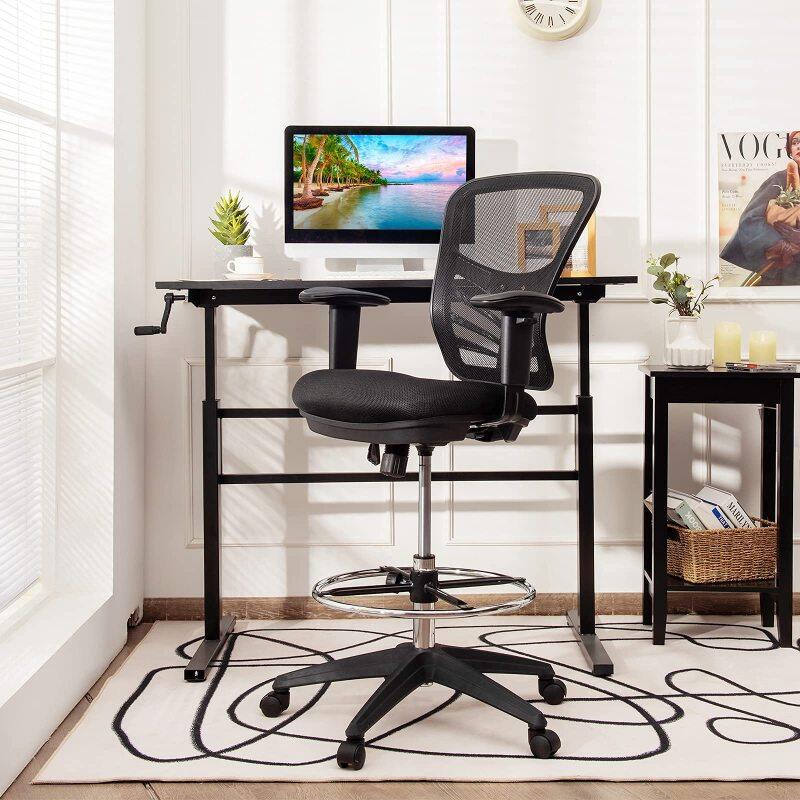 • 『Ergonomic Design for Added Comfort』: Our mid-back tall drafting chair features a form-fitted ventilated mesh back and built-in lumbar support, which helps you take pressure off your back for all day comfort. Additionally, ample sponge padded contoured seat supports your legs and gives you a feeling of relaxation.