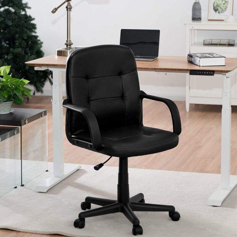 This is our brand new mid-back executive office chair which features sophisticated profile and exquisite workmanship to offer a modern and professional look for your home or office. The adjustable task chair helps promote a comfortable seated position by adjusting the seat height between 16"-19.5", while it offers a versatile range of motion with 360 degree seat and durable casters for multi-tasking convenience. While maintaining ergonomic design, the cushion and backrest of the high-density sponge further enhance seat comfort. Refresh your office space with this office chair, a versatile choice for computer desks and workstations. Don't hesitate to buy it!