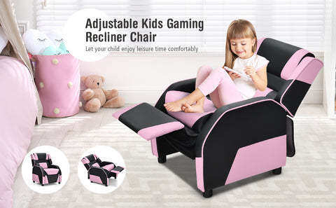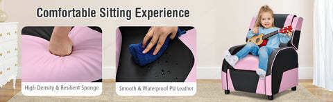 Adjustable Gaming Reclining Chair: No matter whether sitting for reading or lying for a nap, the reclining chair can achieve your children's various sitting needs during leisure time as the backrest can be adjusted from 100 to 160 degrees. The footrest is linked with the backrest, allowing the legs to be fully stretched and rested.