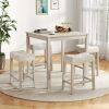 KOMFOTT 5-Piece Bar Table Set, Square Breakfast Set for 4 w/Padded Stools