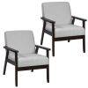 KOMFOTT Armrest Accent Chair, Upholstered Linen Fabric Lounge Chair with Rubber Wood Legs, Comfortable Backrest