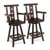 ![29 Inch Wooden Bar Stool 360° Swivel Bistro Chair with Footrest and Armrest]()
