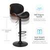 KOMFOTT Bar Stools Set of 2/4, Adjustable Swivel Bentwood Barstools with Back, Large Iron Base, 360 Degree PU Leather Seat and Curved Footrest