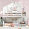 KOMFOTT Twin Over Twin Wood House Bunk Bed for Kids with Roof, Window Door, Storage Box, Safety Guardrails, Wood Slats & Ladder