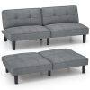 The key feature of this convertible sofa bed is the 6-position adjustable backrest which allows you to customize your seating experience. Whether you're sitting up to read, lounging back to watch a movie, or laying the futon flat for overnight guests, the adjustable backrest offers seamless transition between positions. Upholstered in modern linen fabric and filled with soft sponge, the upholstered couch bed provides plush and cozy sitting experience for you. Besides, the robust construction is complemented by 6 support legs and solid wood frame. Transform your home into a cozy and inviting retreat with this modern sofa bed!