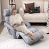- Adjustable Chaise Lounger: The headrest, backrest, and waist part are adjustable, each with 6 adjustable levels, and the footrest has 8 adjustments. According to your different needs, you can pull the armrests to adjust the backrest to a floor chair for reading, a chaise lounger for relaxing, or a single bed for napping.