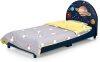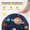 - 【Fall Asleep with Your Sweetheart】: This kid's bed is designed with planet graphics on the headboard and footboard in navy color, which is exactly what your big boys or girls will like to add to their bedroom decor. The twin bed frame is upholstered with a sponge to add comfort and durability and it will be an attractive and appealing pink bed to let your little girls play and sleep in sweet dreams.
