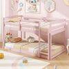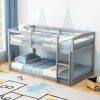 KOMFOTT Twin Over Twin Solid Wood Low Bunk Bed with Full Guardrails & Integrated Ladder