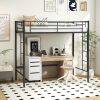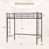 Maximize space and style with our versatile twin loft bed! Featuring a 12” full-length guardrail and dual ladder design for added security and easy access, this sturdy metal bed is perfect for young users and restless sleepers. The elevated bunk creates ample under-bed space for a computer desk, dressers and other furniture, while supporting a standard twin mattress without a box spring. Ideal for kids’ rooms, dormitories, and small apartments, its simple modern design complements any style and maximizes room efficiency. Say goodbye to clutter and hello to functionality with this space-saving solution!