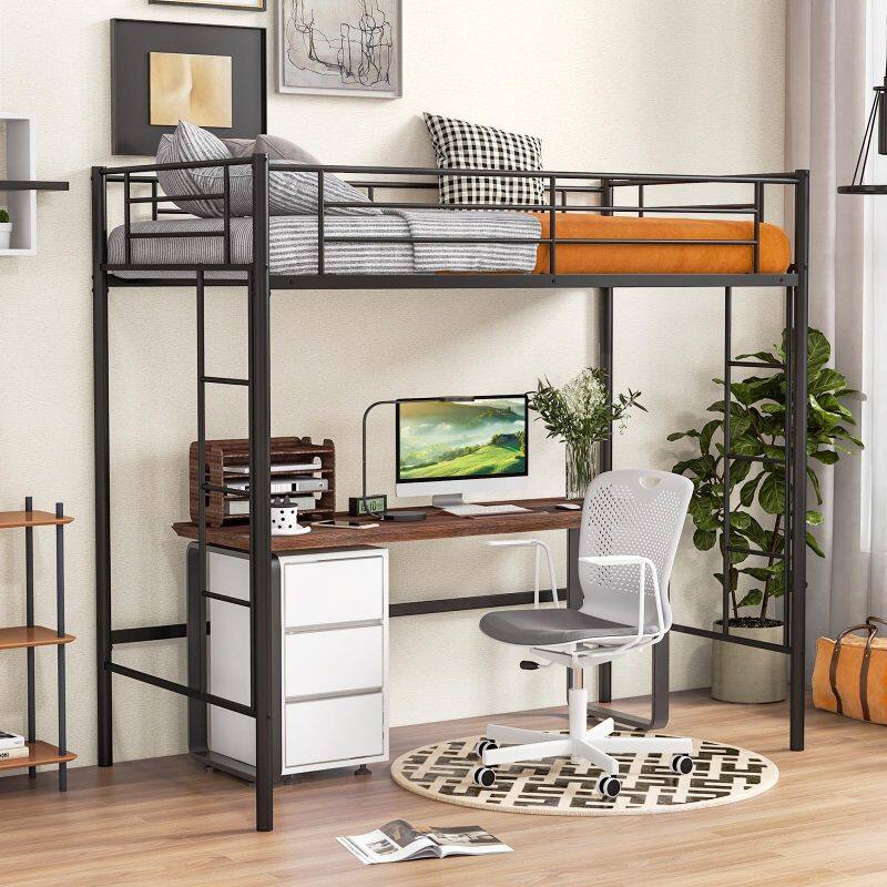 - Concise & Chic Design: With sleek lines and modern design, this metal loft bed adds a highlight to your home and matches seamlessly with interior decoration. Besides, the loft bed combines a chic appearance and versatile use into one, which is suitable for your room, dormitory, apartment, or somewhere with limited space.