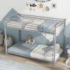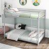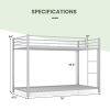 Our space-saving twin over twin bunk bed is the perfect solution for small rooms seeking to optimize vertical space while maintaining comfort and style. Crafted with a sturdy steel frame and powder-coated for rust resistance, this bed is built to last. With no box spring required and its easy assembly, you can start using it right away. The built-in ladder and raised 10-inch guardrails ensure safety, making it ideal for children's rooms. Suitable for apartments, dormitories, and various decorating styles, our bunk bed offers functionality and sophistication without compromising on space or aesthetics.