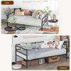 • [Dual-use Daybed Frame]: The metal daybed boasts great adaptability, serving great as a twin bed in your bedroom, a sofa or extra seating in the living room. Plus, it is a space-saving choice for temporary sleeping. With dimensions of 77.5" x 40.5" x 29", the sofa bed can accommodate standard twin size mattresses (not included).daybedHU10407HU10407HU10407HU10407HU10407