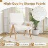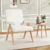 KOMFOTT Mid-Century Modern Accent Chair, Sherpa Fabric Reading Chair with Padded Armrests, Solid Rubber Wood Frame