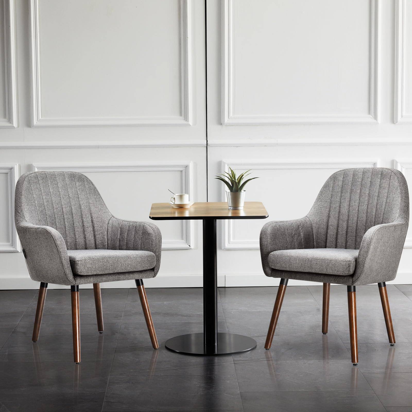 KOMFOTT Set of 2/4 Fabric Dining Chairs, Accent Upholstered Arm Chair w/Wood Legs