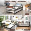 - [Space-saving Trundle Bed]: This 2-in-1 sofa bed consists of a metal single bed and a pull-out trundle bed, which can be nested together to save space for daily use, or be used separately as guest bed when a guest comes over.