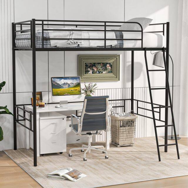 - 【Solid Metal Loft Bed Frame】: The metal bed frame made of heavy-duty steel pipes features a considerable bearing capacity of up to 330 lbs. The solid steel slatted bed accommodates standard twin size mattresses and requires no box spring. Besides, the stove-varnishing process also prolongs the service life of the bed and makes it able to witness kids’ growth.