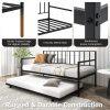 - Chic Style & No Box Spring Needed: This sturdy metal slatted sofa bed provides reliable support for the mattress and requires no box spring, which is compatible with a standard twin-size mattress (not included) with a thickness of 6-8 inches. With sleek lines and classic design, the daybed with trundle matches seamlessly with interior decoration.