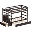- Safety Guardrails & Sturdy Staircase: The upper bunk is equipped with 12.5" high full-length guardrails to prevent falling off the bed, ensuring a secure night. In addition, this trundle bunk bed features a 3-step staircase instead of a ladder, making it safer and easier to go up and down.