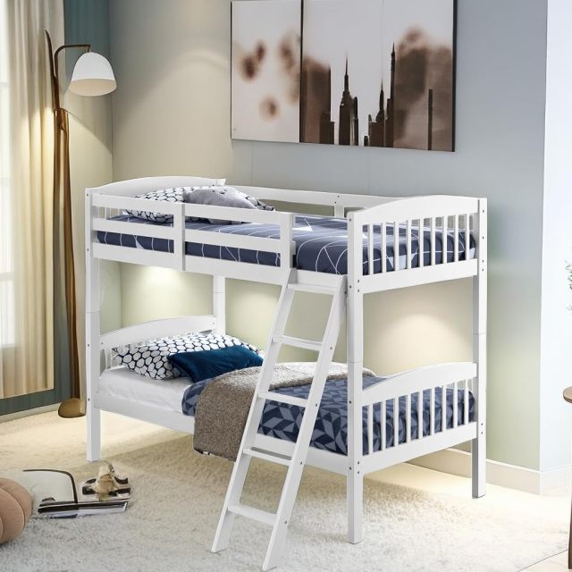 - Enhanced Safety Features: The ASTM and CPSIA compliant twin over twin bunk bed is equipped with 12" high guardrails and protective handrails. These features prevent falls and assist children in safely accessing the upper bed. Please note that kids under the age of 6 are not recommended to sleep on the upper bunk.