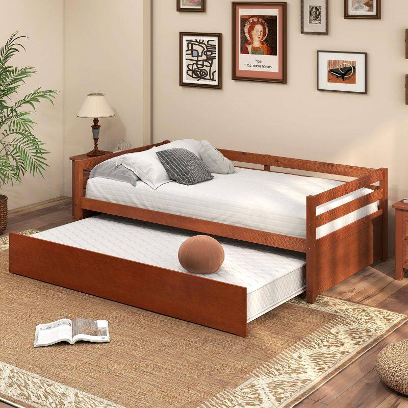 Our multi-functional daybed is committed for rooms with limited floor space, which can provide two additional sleep areas for overnight friends or family and also provide ample storage for bedroom items, making it easy to maintain pristine organization in your bedroom. Made of high-quality pine wood with strong legs and wide slats, our daybed can not only improve the weight capacity but also increase its stability. This beautiful daybed is great for a kid's room, guest room, living room, or anywhere you need it. With its minimalist slatted shape and modern look, this daybed can well match any interior. A practical and perfect wood daybed frame for those who have lots of visitors!