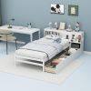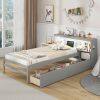 Maximize your kid’s bedroom’s potential with this stunning twin bed frame! Featuring a bookcase headboard incorporated with a 2-tier nightstand, it’s a dream for space-savers. Love reading at night? The built-in bright LED light provides a perfect, cozy glow, eliminating the need for extra lamps. Charge your gadgets right from your bed with the handy USB and Type-C outlets. Plus, declutter in style with 2 large, movable storage drawers—ideal for stashing away clothes or toys. Crafted from solid wood and reinforced with sturdy slats, this bed frame offers supreme durability without the bulk of a box spring. Upgrade your sleep experience and embrace elegance with this multifunctional bed designed for modern living!