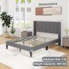 Transform Your Slumber into an Elegance Affair! Unveil the secret to opulent slumber and serene mornings with our bed frame’s soft-upholstered wingback headboard - your very own cozy sanctuary. No more box springs! Our robust wooden slat system breathes new life into your mattress, promising cloud-like comfort night after night. Store, sweep, and swoon over the extra under-bed space - tidy has never looked so chic. Embrace unshakable sleep with our bed frame’s unmatched stability and say goodbye to wobbly nights. Wave your clutter goodbye with our smart side pockets—remote, phone, or bedtime novel, always within reach. And, behold, a headboard that whispers timeless taste ignites your bedroom's ambiance with just a glimpse! Upgrade your realm of rest now.