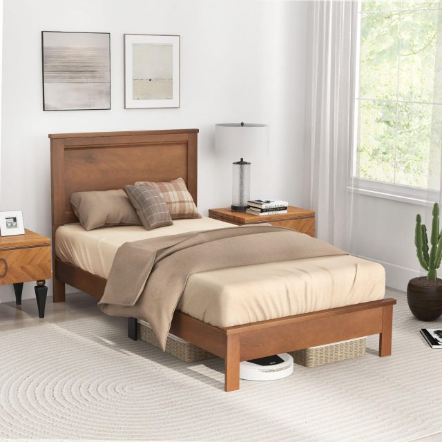 KOMFOTT Wood Platform Bed Frame with Headboard