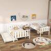 Sweet dream and amazing day start with this bunk bed with trundle! The bunk bed features a pull-out trundle bed that can be converted as a guest bed or lounger. More, it can be configured into 2 separate platform beds when your kids grow up and want their own space. Made of high quality pine wood frame, this bunk bed is stable and durable enough to support long-lasting use. Considering safety use, high guardrails provide enhanced protection and reversible ladder is securely mounted on the bed for climbing up or down easily. Enjoy the practicality and functionality of this solid wood bunk bed!