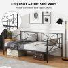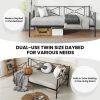 - Sturdy Construction: The twin daybed frame features a robust metal structure with 14 metal slats that provide stable and level support. The slatted platform ensures a noise-free sleeping experience without the need for a box spring.