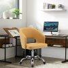 • [Upholstered Seat with Ergonomic Design]: This mid back swivel chair features curved backrest and armrests. The embracing design will offer you a good back support. With the high-resilience padded sponge, this soft seat cushion provides you with great comfort for your working or reading.