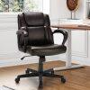 KOMFOTT Leather Modern Executive Chair, Ergonomic Mid Back Computer Desk Chair w/Padded Armrests