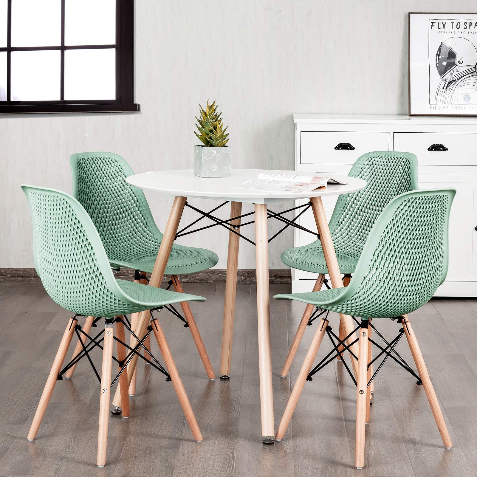 KOMFOTT Set of 4 Modern Dining Chairs, Outdoor Indoor Shell PP Lounge Side Chairs with Mesh Design, Beech Wood Legs