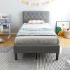 - [Unique & Aesthetic Appearance]: This platform bed with modern headboard is an elegant and practical addition to any bedroom. More, stylish button tufted design and upholstery make up a high-quality and understated appearance.