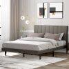 - Upholstered Bed Frame: Designed with wrap stitch patterning, this headboard adds a stereoscopic feeling to your bedroom and matches seamlessly with home decoration. This bed frame keeps a good balance between great quality and elegant appearance, making an instant upgrade in comfort and style.