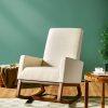 Mid-century Appealing: A retro-inspired rocking armchair, but also in line with modern aesthetic. Combining fabric texture with natural rubber wood legs, this rocking chair will be a versatile option for any home and office decor.