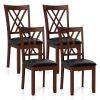 With a considerate design, each kitchen chair features a 22'' high backrest and a 5'' thick seat that reduce sedentary discomfort. Upholstered in durable PVC leather, they offer a skin-friendly touch that is easy to maintain. The chairs are filled with ultra-soft sponge for added elasticity and fatigue relief. With rubber wood legs and anti-slip foot pads, they provide stability and can support up to 355 lbs. The vintage style is accentuated by the black seat, brown wooden frame and decorative double X-shaped frames. Installation is a breeze, thanks to the user-friendly manual.Features